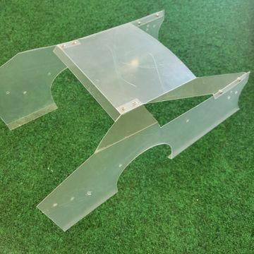 Start by attaching the roof section to the driver and passenger side panels with 8 screws and nuts. It may be necessary to manipulate the bends to obtain a correct fit.